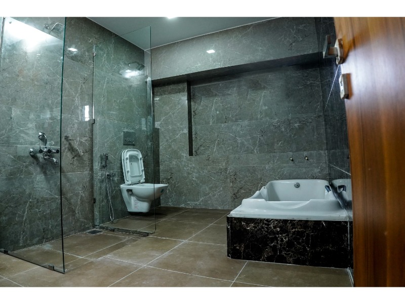 an oasis of indulgence and refinement where every moment is designed to elevate your senses and provide an unparalleled bathing experience. Step into a realm of opulence as you enter our Royal Bathroom, meticulously crafted to exude a sense of lavishness and sophistication. Adorned with the finest materials and impeccable attention to detail, this exclusive sanctuary invites you to unwind and rejuvenate in the lap of luxury.The centerpiece of the Royal Bathroom is the extravagant Jacuzzi tub, beckoning you to immerse yourself in a world of relaxation. Let the soothing jets melt away the stresses of the day, while you bask in the warm embrace of tranquility.